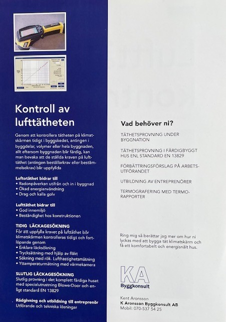 KA Byggkonsult erbjuder täthetsprovningar av klimatskärm för utröna ev läckage
